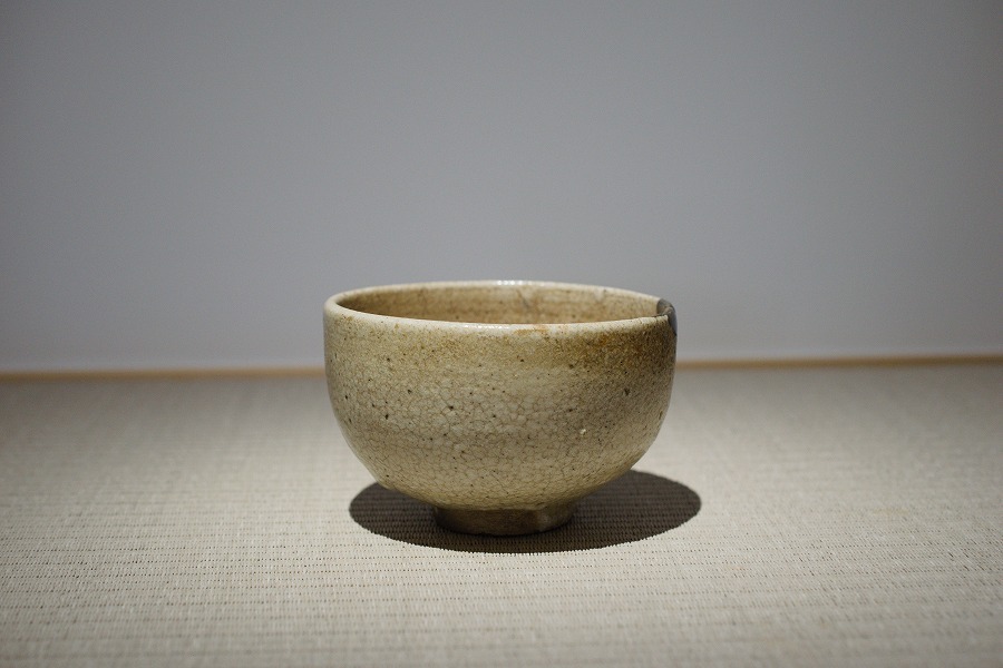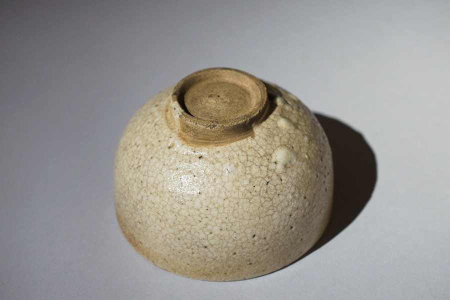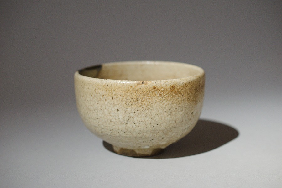 無地志野の茶碗です。こんもりした丸みある優しい碗相が魅力的です。伝世された肌の味わいも侘びた風情に育っております。シンプルながら大らかな気風をたたえており、日々の喫茶の時を豊かにしてくれる作品です。