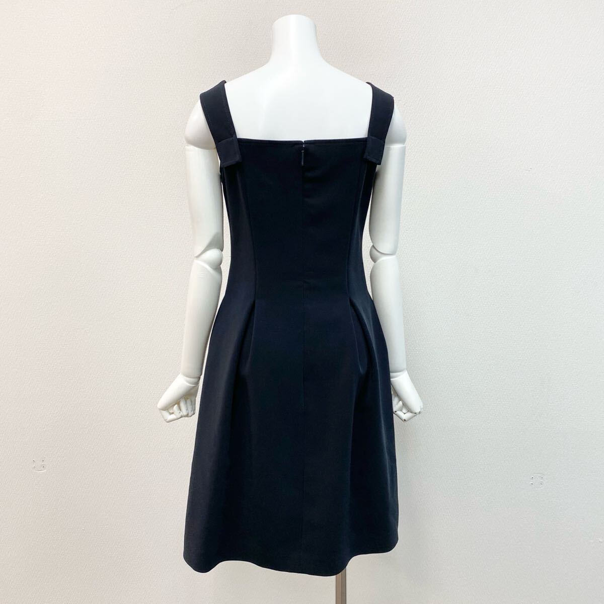 g20☆ 美品 Rene basic ルネ ベーシック ノースリーブワンピース 膝丈ワンピース スクエアネック バックファスナー サイズ34 レディース