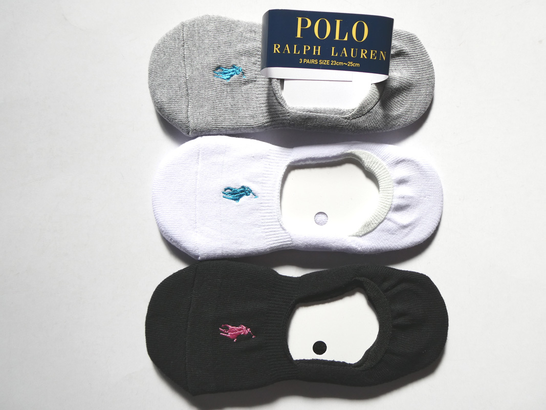 Product name: POLO ラルフローレン新品!3足セット マーク刺繍ベリーショートソックス 23-25cm黒白灰 送料無料フットカバーパイル カラー靴下