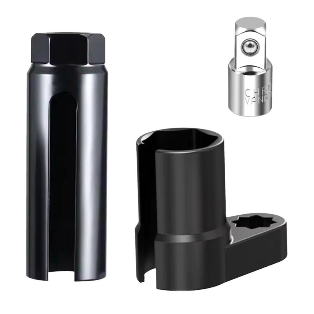 O2センサーソケットレンチ 2個セット 変換アダプター付 22mm対応 ロング ショート スリット付き 工具 管理E2