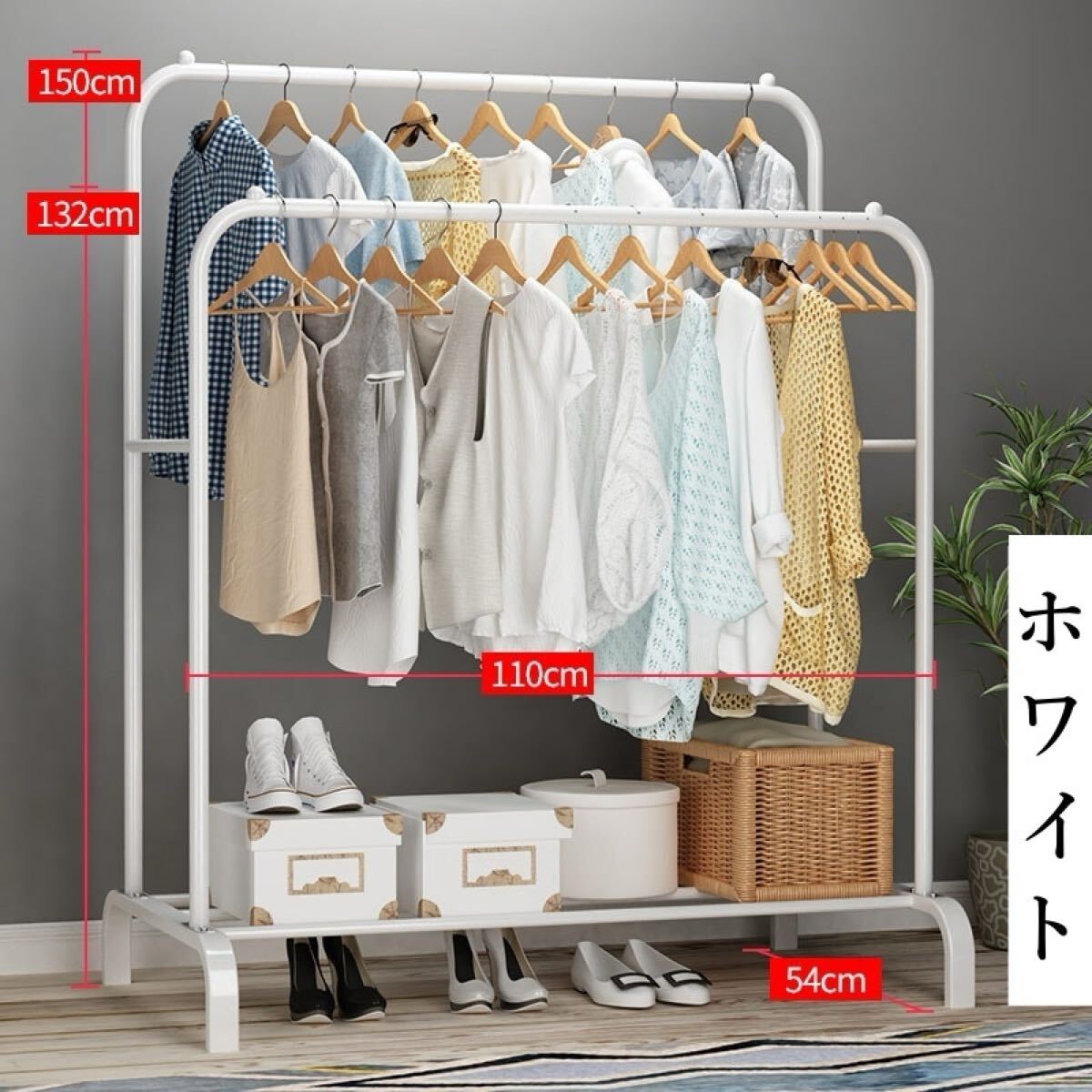 Product name: 訳あり アウトレット ハンガーラック 2段 頑丈 パイプハンガー 衣類収納 洋服掛けラック 子供 洋服 コート 洗濯物 室内干し 家族 ホワイト