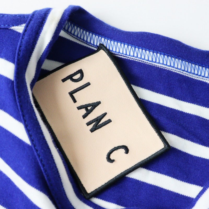 イタリア製 プランシー Plan C ワイドスリーブTシャツ S/ブルー ホワイト カットソー ゆったり ワンポイント 薄手【2400014552942】