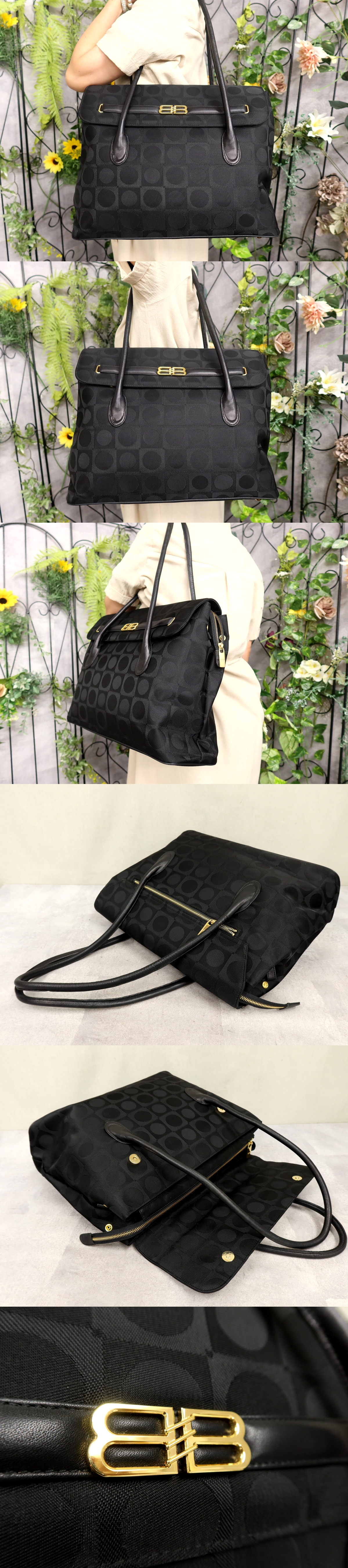 Product name: ●超美品●BALENCIAGA バレンシアガ●BBロゴ●ナイロン カーフ レザー 本革●トート ハンド バッグ●黒●ゴールド金具●A4 収納●Js59351
