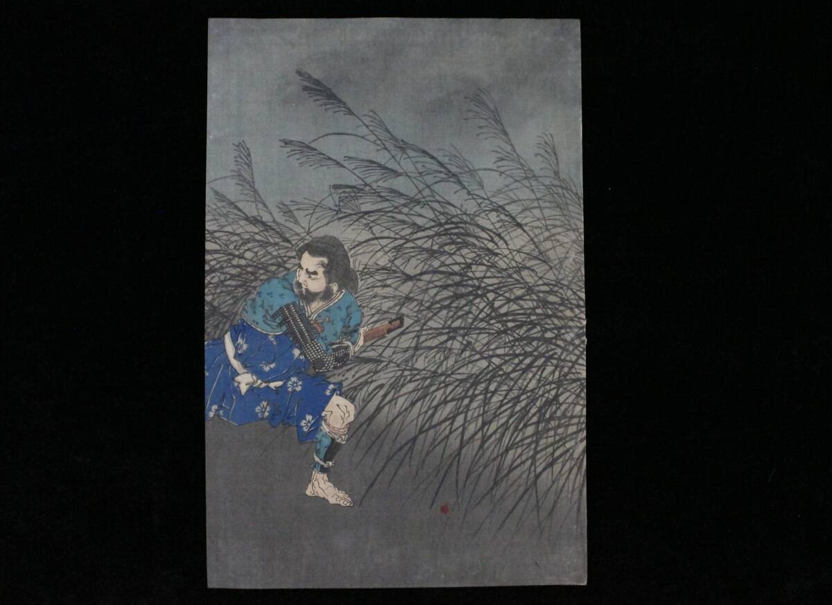Product name: 【真作】 浮世絵 月岡芳年 木版画 『藤原保昌 月下弄笛図』 35.5×23cm(1枚当たり) 3枚続 03404083-41