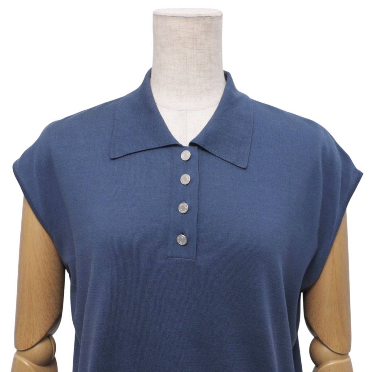 Product name: GR9949☆エルメス HERMES セリエボタン ニット ポロシャツ ノースリーブ フレンチスリーブ トップス コットン ブルー系 サイズ38