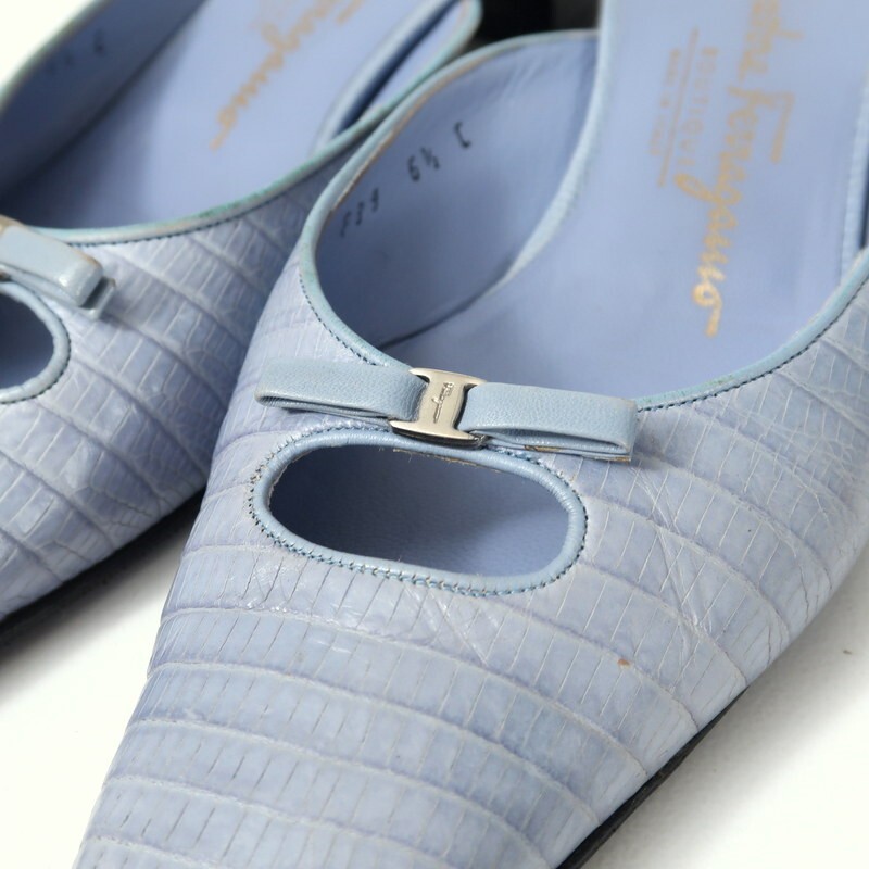 Product name: MH9386*イタリア製 サルヴァトーレフェラガモ 6.5C(23.5cm相当) ヴァラリボン レザーミュール サンダル リザード型押し 靴 ブルー