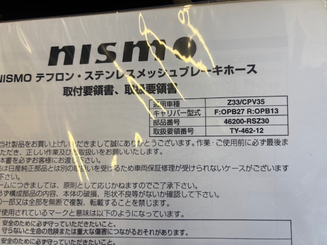 Product name: ☆NISMO Z33 CPV35 テフロンメッシュブレーキホース新品 リア左右 フロントは左のみ