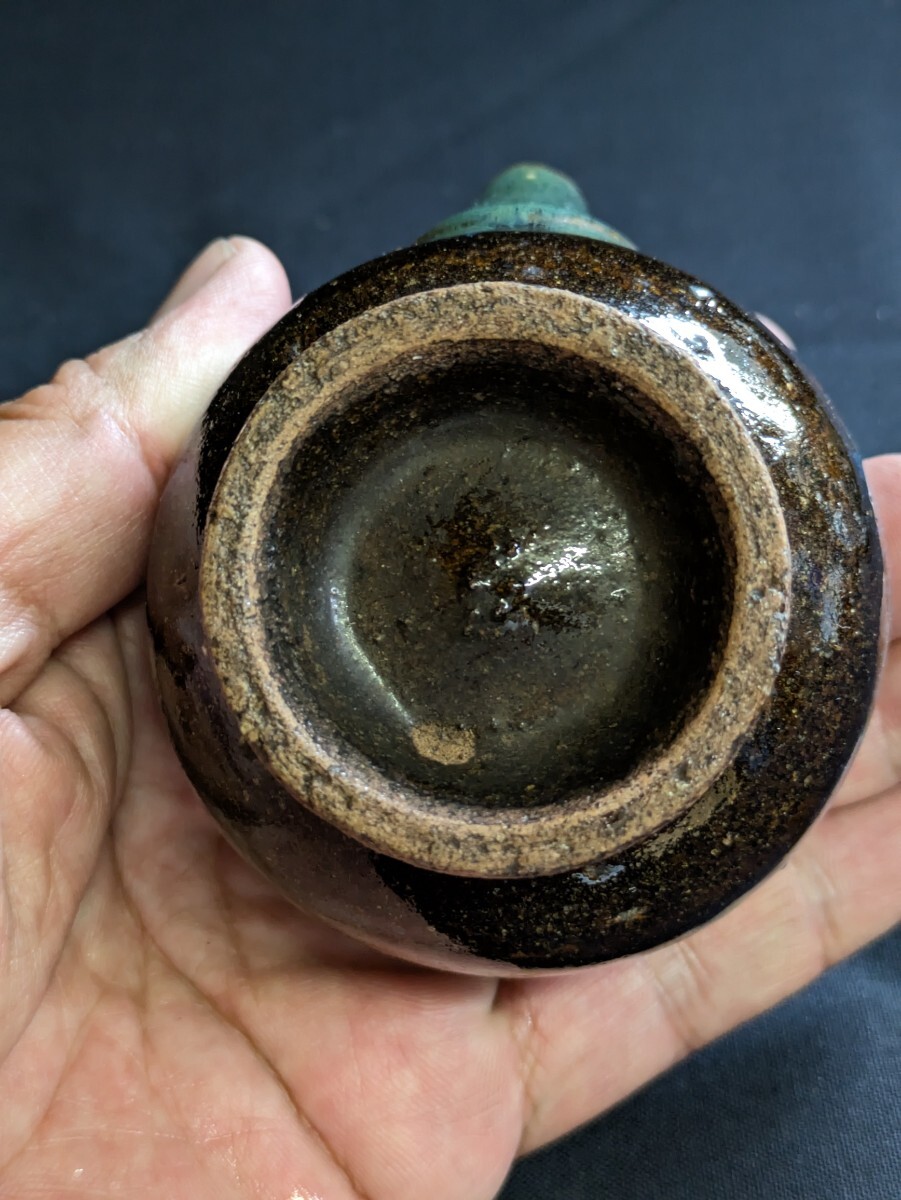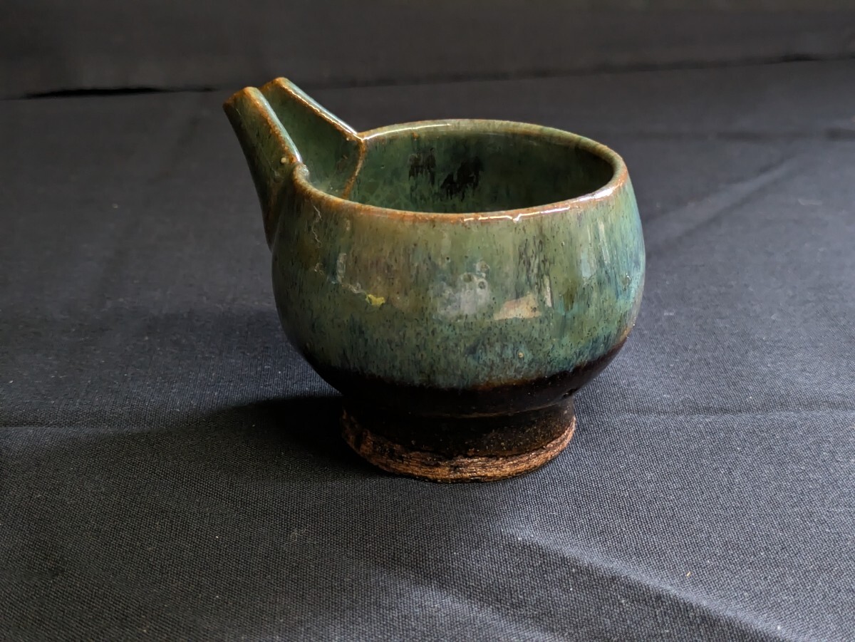 Product name: 時代物 古い 酒器 緑釉 片口 盃 ぐいのみ 約8.5×7cm 唐津? 詳細不明