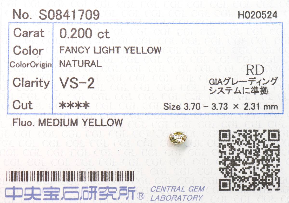 VS2!0.200ct 天然ダイヤ FANCY LIGHT YELLOW(ナチュラルカラー)RD