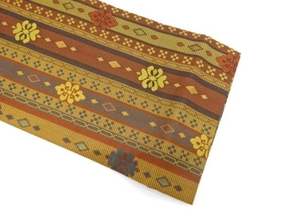 189169# 【1円~】縞に花菱模様織り出し名古屋帯