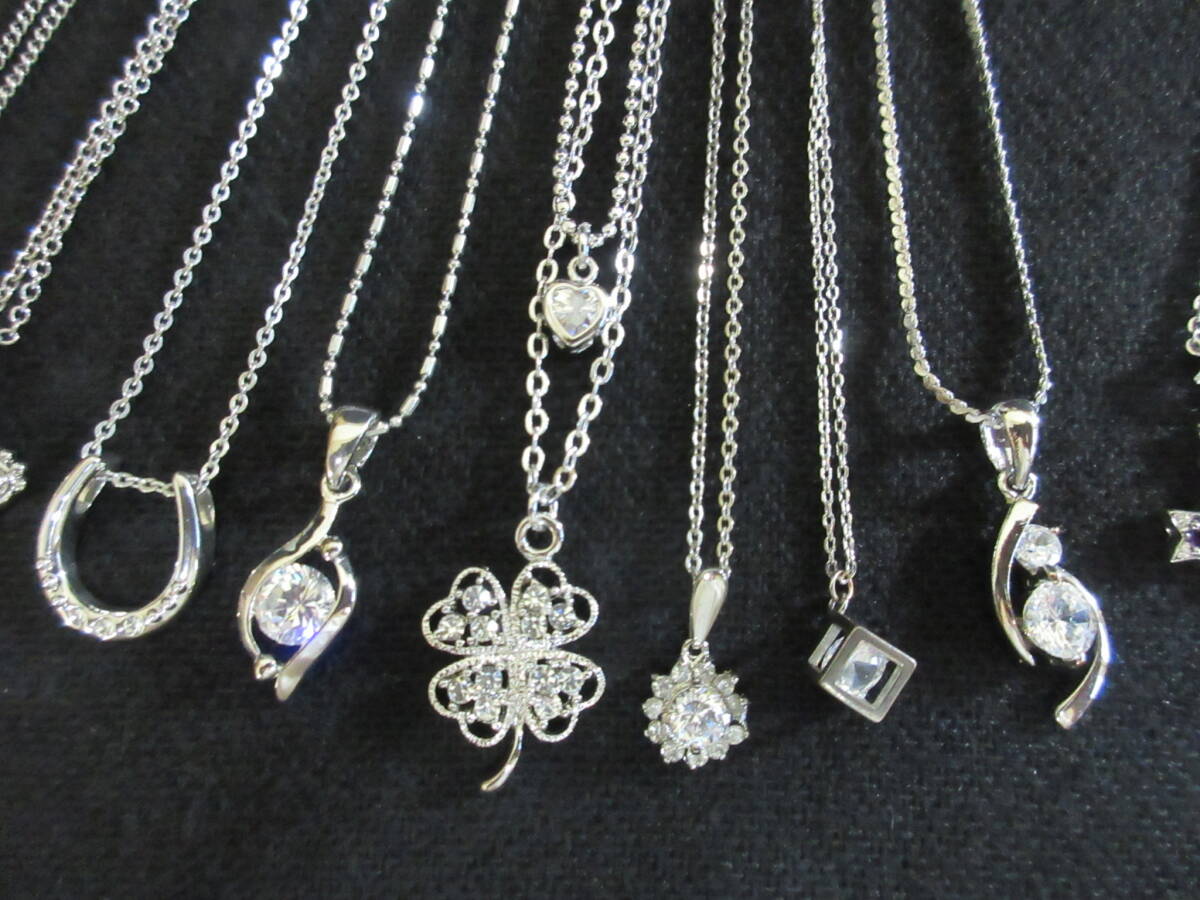 Product name: *100円~【大量】豪華 トップ キュービックジルコニア・ラインストーン付 シルバーカラー デザイン色々 ネックレス 20点セット*K-21