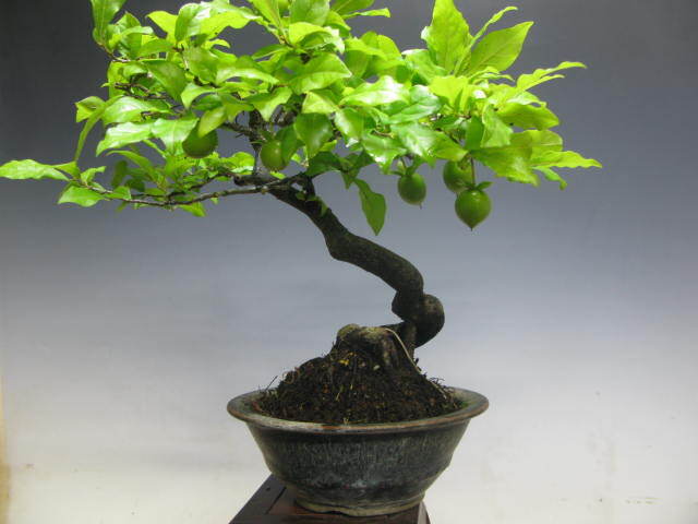 ★ローヤ柿の小品盆栽です。幹模様もよく形のいい実も着いています、飾れます。