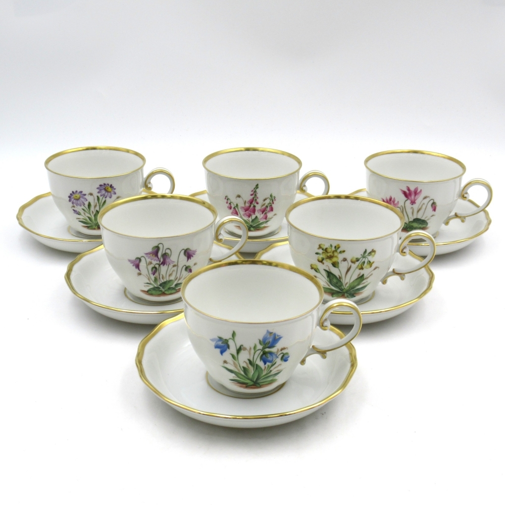 1円〜 1.Augarten アウガルテン アルペンフラワー カップ&ソーサー 6客 計12点 ※同梱不可 4016239