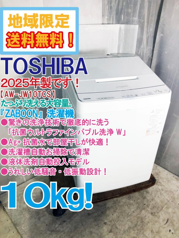 地域限定送料無料★2025年製★新品未使用★東芝 10㎏ 抗菌ウルトラファインバブル洗浄Wでしっかり洗浄!洗濯機【AW-JW10TCS】FCBS