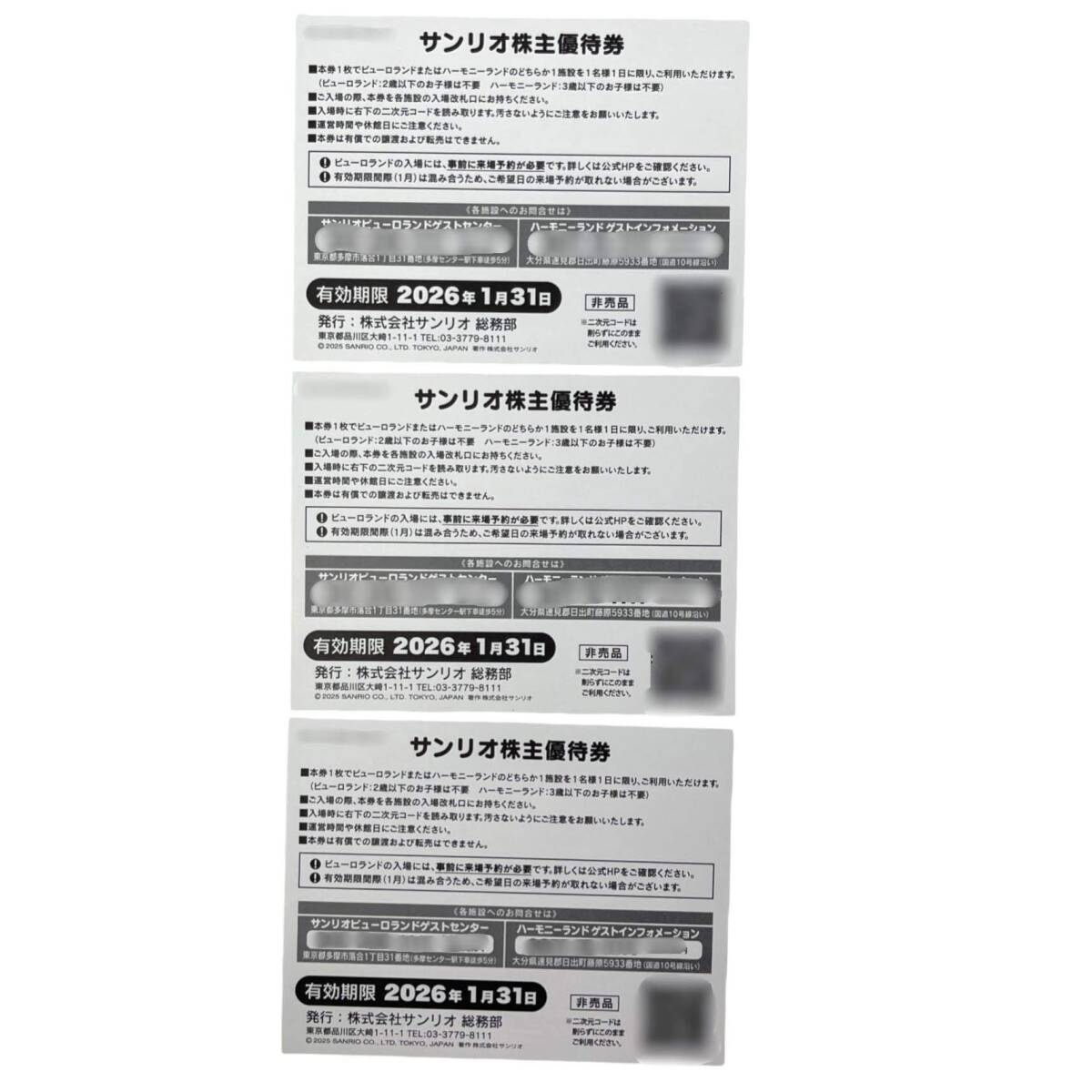 商品名サンリオ株主優待券(サンリオピューロランド・ハーモニーランド共通優待券) 2026/1/31まで