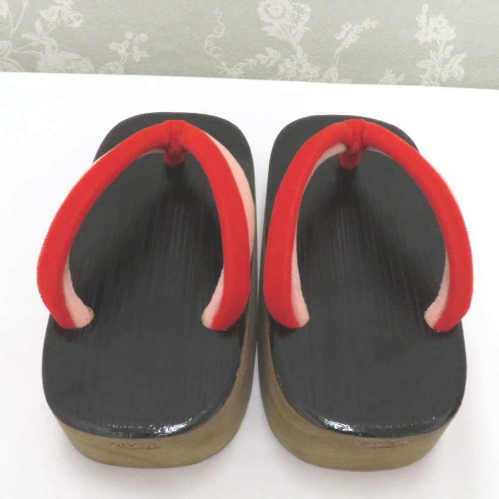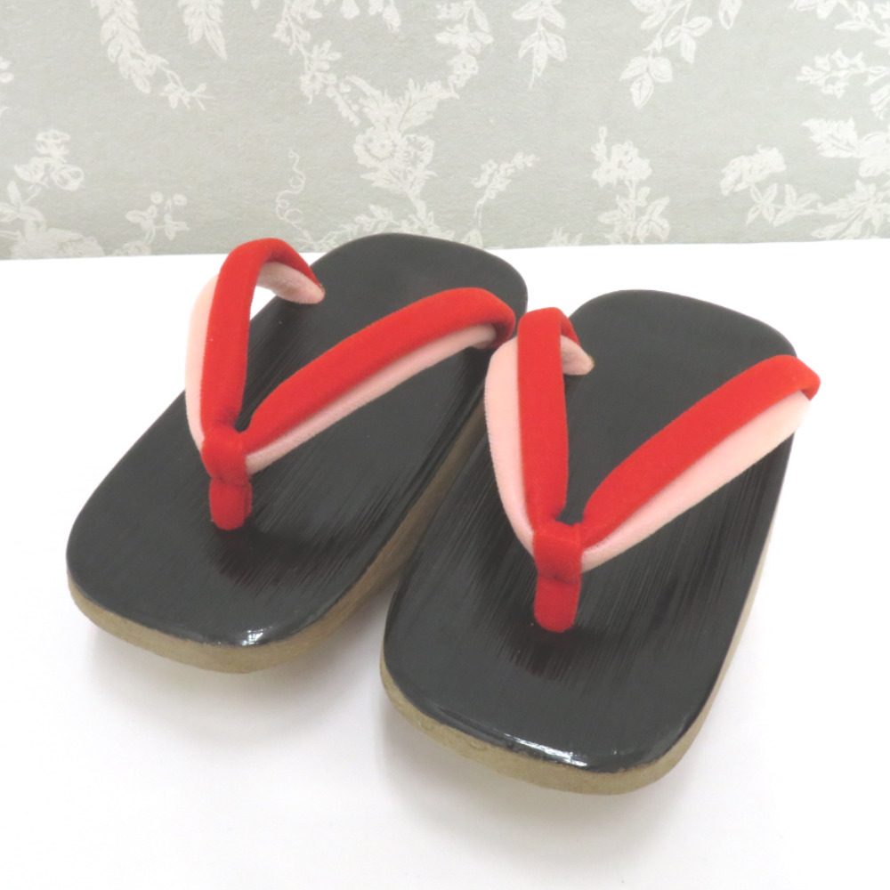 商品説明 シンプルな黒の台に合わせやすい赤とピンクの鼻緒のぽっくり下駄です。