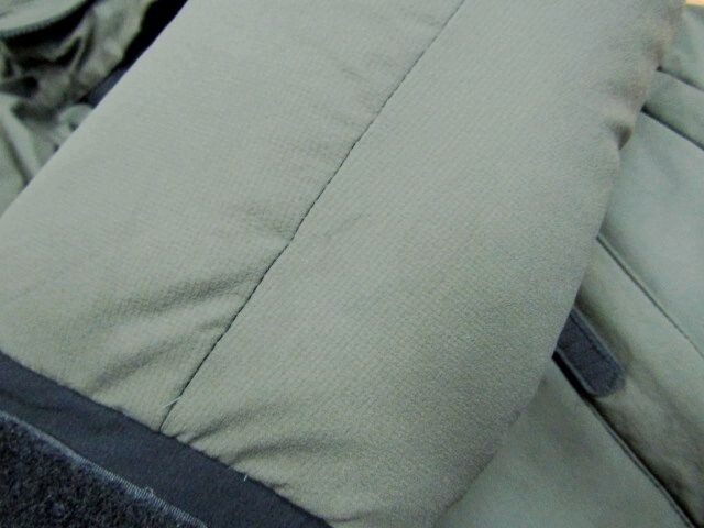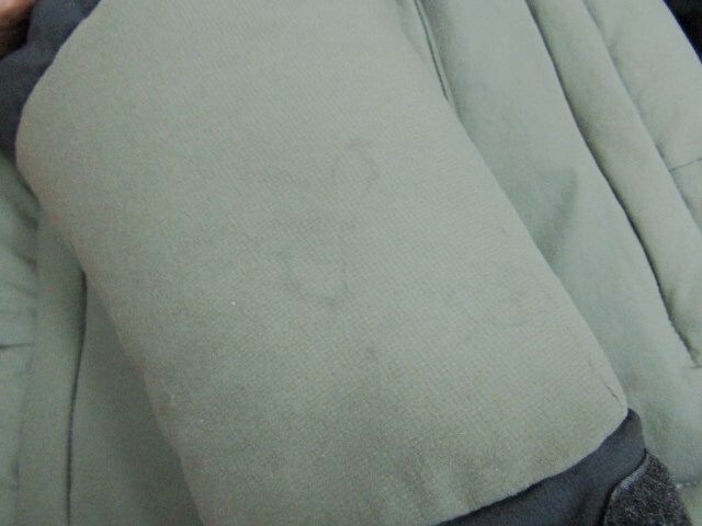 中古品ですので使用感、経年使用によるアタリや褪せ・薄汚れ、左右袖先裏・襟周りに汚れ、右肘上に小さな破れと補修シートによるリペア(写真7枚目)、左右袖先上にシミ・汚れ(写真8・9枚目)、裏地右裾コードストッパーの破損(写真10枚目)、フード縁周りに汚れはありますが、その他特別に目立った汚れ、破れなどはなく、全体的にはまだまだ着て頂ける状態であると思います。