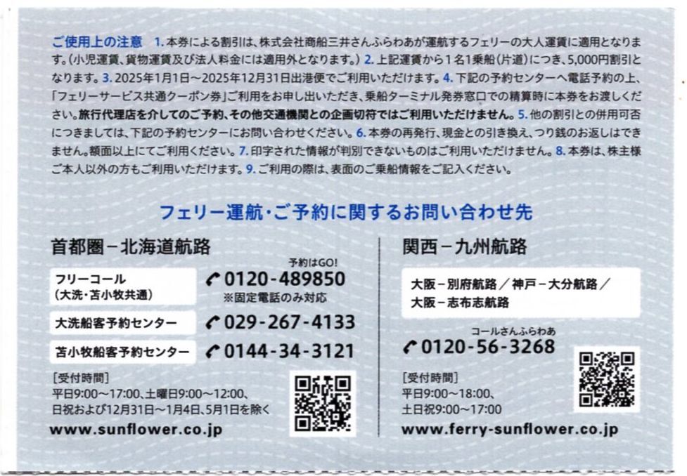 商船三井 さんふらわあ フェリーサービス共通クーポン券 5000円 1-9枚 2025/12/31期限 送料無料 即決