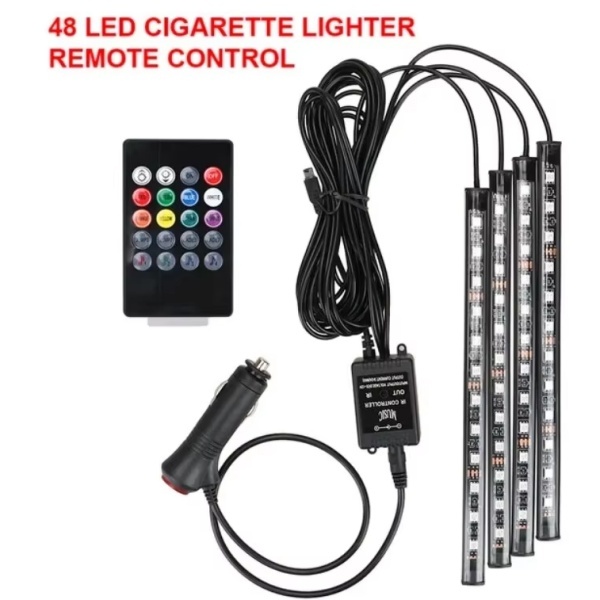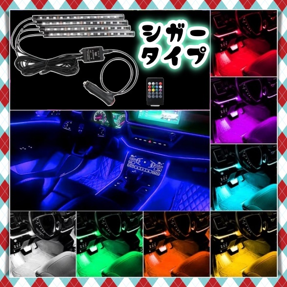 Product name: 4本 LEDフロアライト 音楽連動 シガーソケット 電源 スイッチ リモコン 付き 車内 足元ライト 照明 装飾 LEDテープ イルミ 12V レッド 汎用