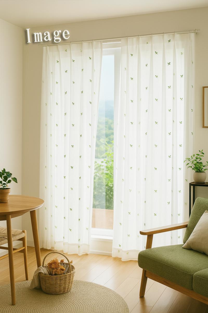 ナチュラルな葉柄の刺繍がやさしく揺れる、遮像タイプのレースカーテンです。