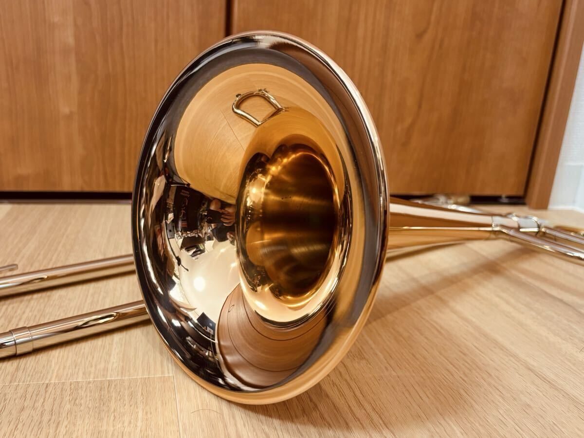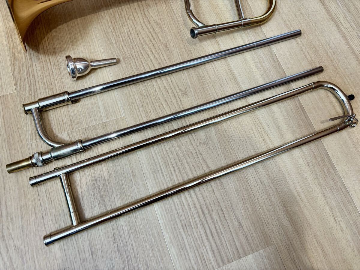 前オーナー様がドイツのK&Hの工房にて購入。通常は上記の様に説明のあるモデルですがスライドをストレートボアにする事で、よりオーケストラモデルとしての要素が強い仕様となっています。別注品の為モデル名等刻印は入れてありません。