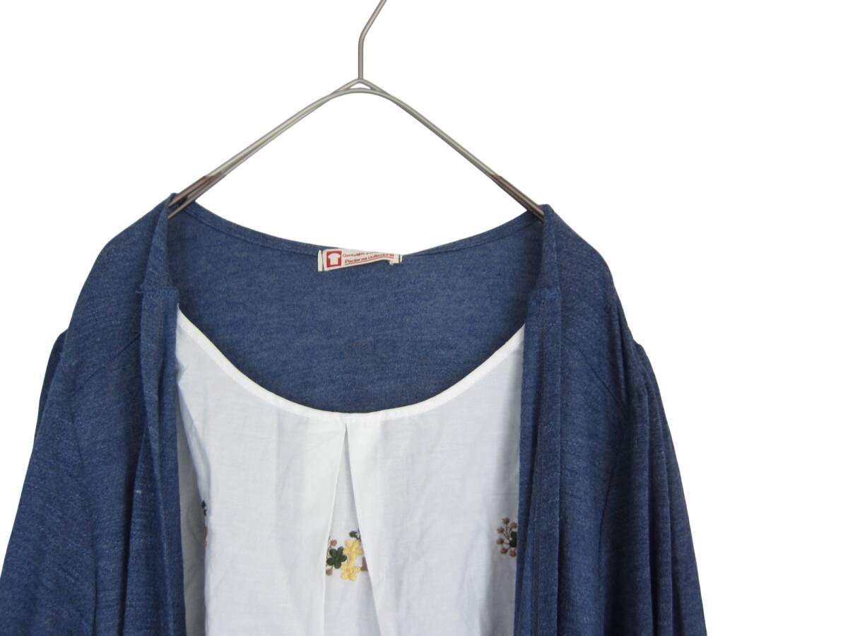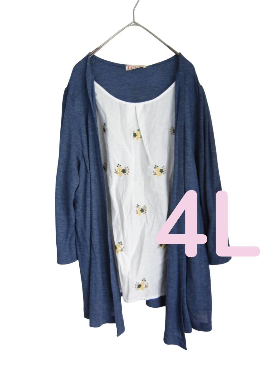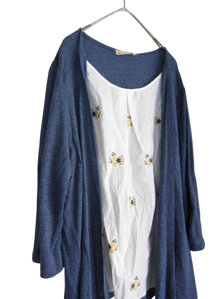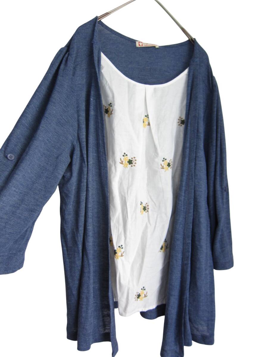 Product name: ★送料無料 R50 新品 【4L】 ブルー 重ね着風 黄色花刺繍 チュニック 大きいサイズ 7分袖 袖ロールアップ ゆうパケットポスト