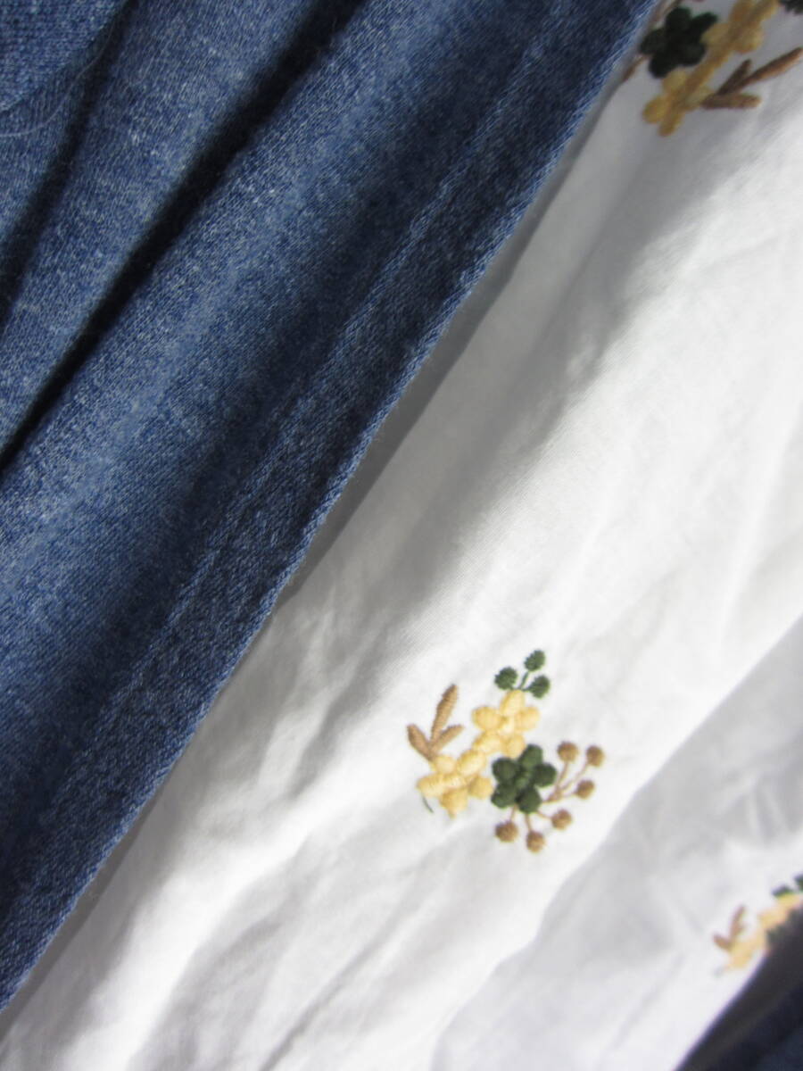 ★送料無料 R50 新品 【4L】 ブルー 重ね着風 黄色花刺繍 チュニック 大きいサイズ 7分袖 袖ロールアップ ゆうパケットポスト
