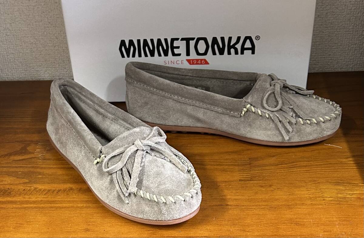 新品☆ミネトンカの高級スエード本革製のモカシン☆グレイ☆US7☆24.0㎝