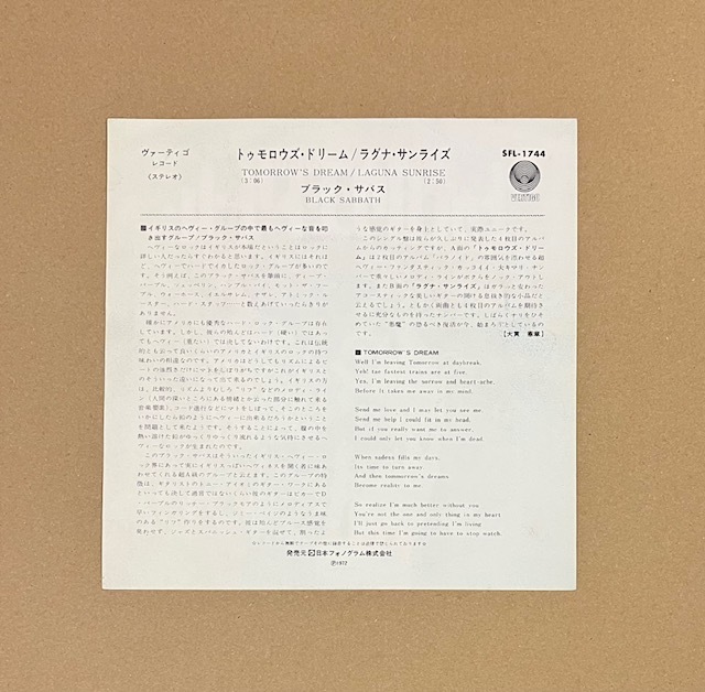 【 7インチEP / Black Sabbath / Tomorrow’s Dream 】