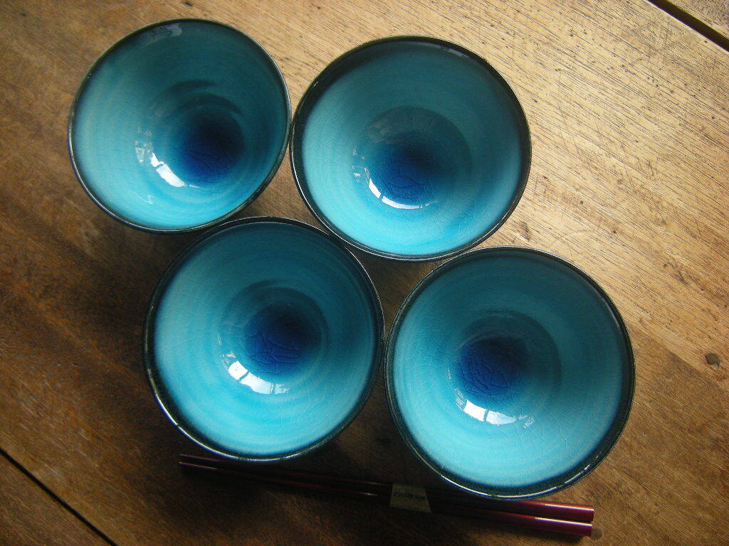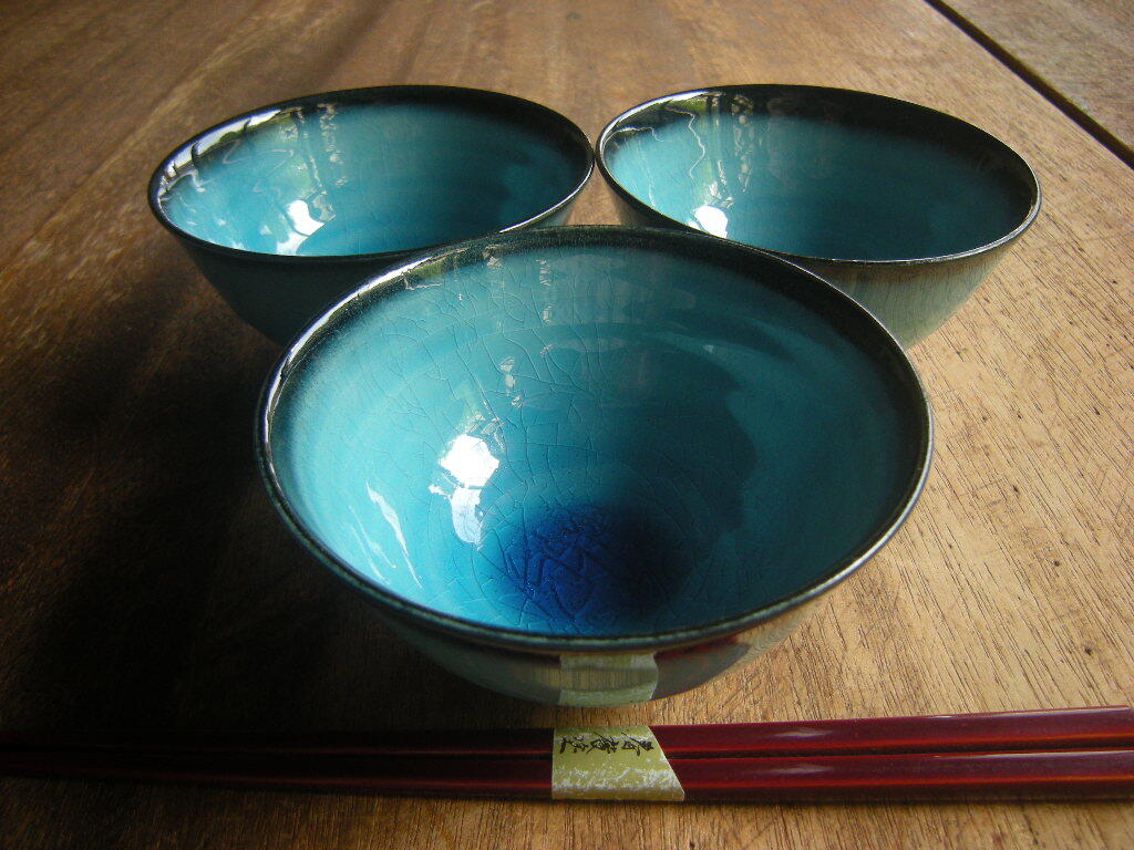 Product name: 東◎美濃焼【新品*未使用】貫入 トルコ釉 黒渕 ご飯茶碗 飯碗(11.5㎝x6.2㎝)1碗から *高級うつわ*料亭うつわ*こだわりうつわ*