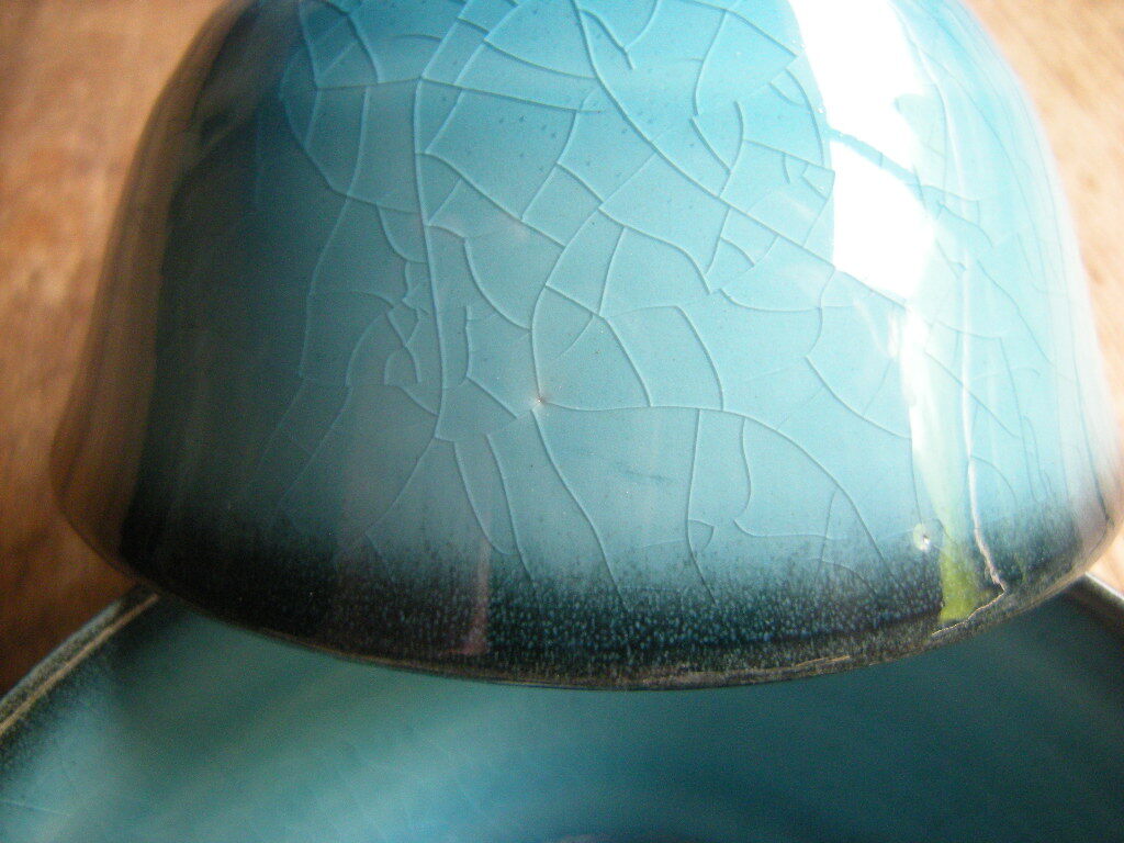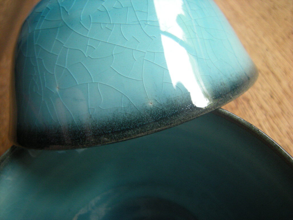 釉薬の飛び(黒ボチ・切れ・凹凸)、生地の切れが稀にございます。