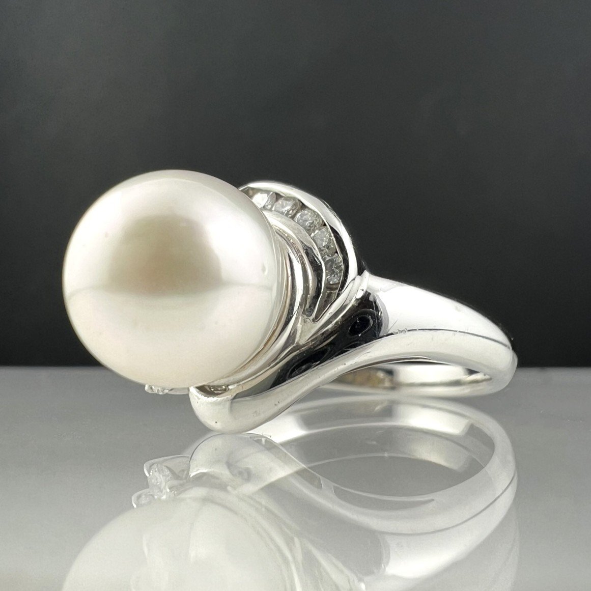 【77】 Pt900 リング ダイヤモンド 真珠 パール レディースアクセサリー プラチナ キラキラ (約) 14.5号 7.5g 9.1mm珠 D0.13ct(2844)