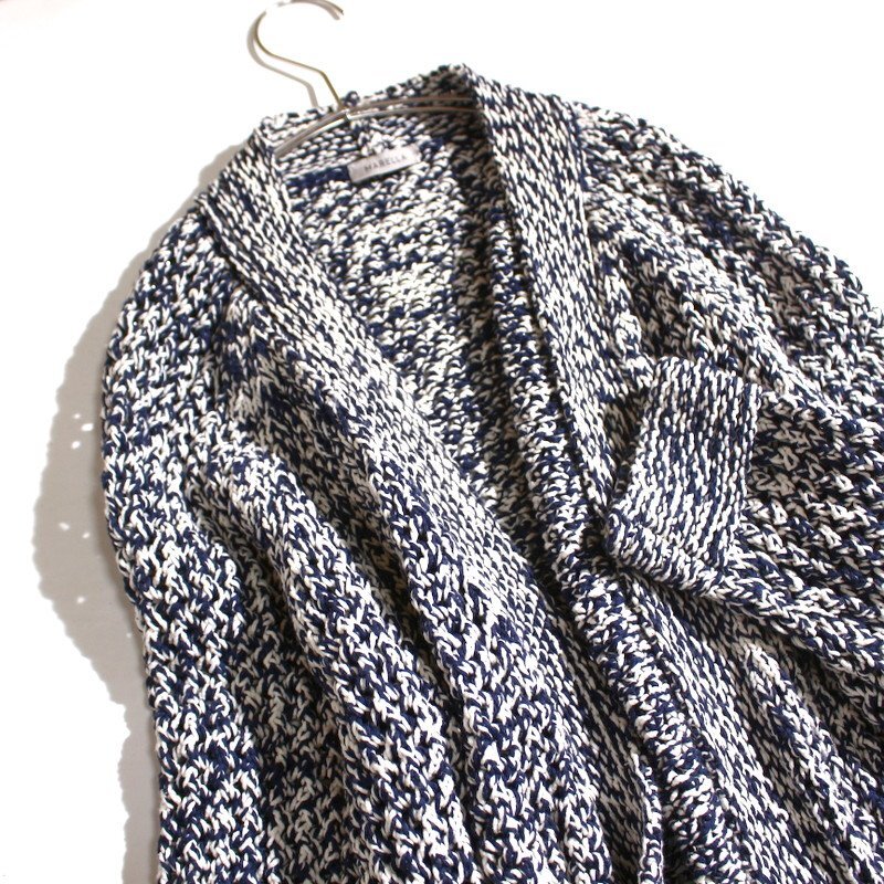 Product name: 美品 MARELLA マレーラ マックスマーラ 株) 三喜商事 ざっくり コットン ミックス ロングニットカーディガン ネイビー 紺 ホワイト 白 厚手