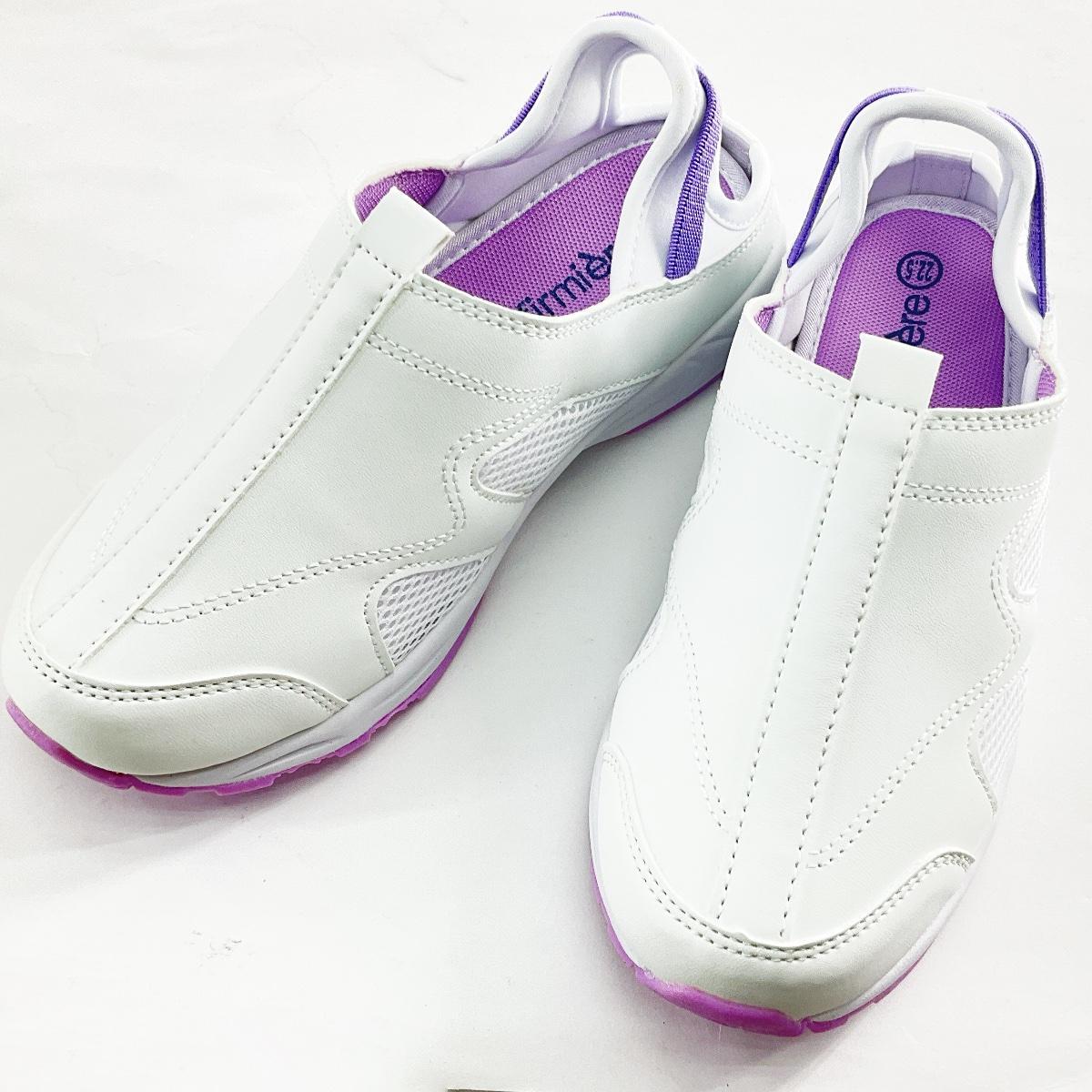 ナースクロッグ 2WAYスリッポンシューズ スポーツフィット バックバンド付き 22.5cm 幅広4E ホワイトxラベンダー