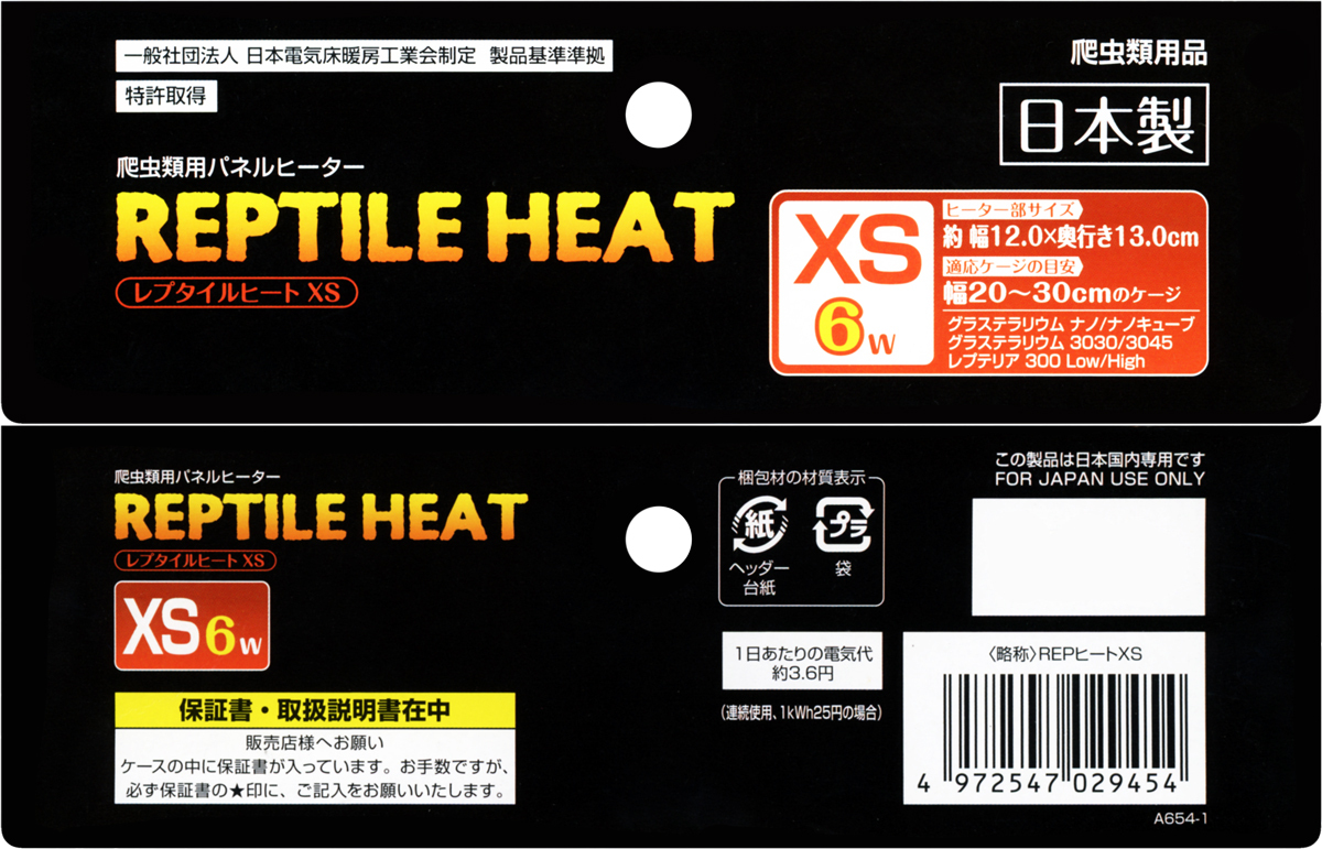 機種名   レプタイルヒート XS   品名   爬虫類用ヒーター