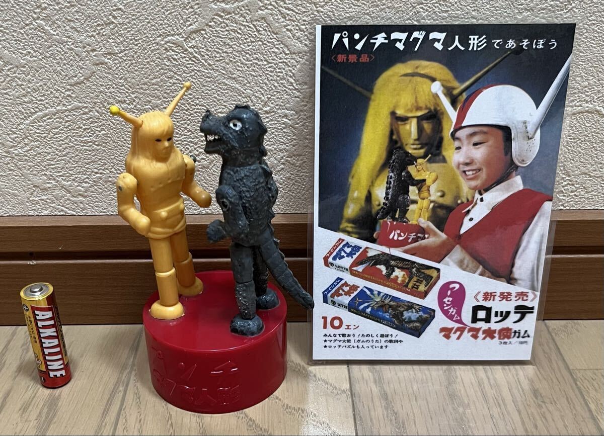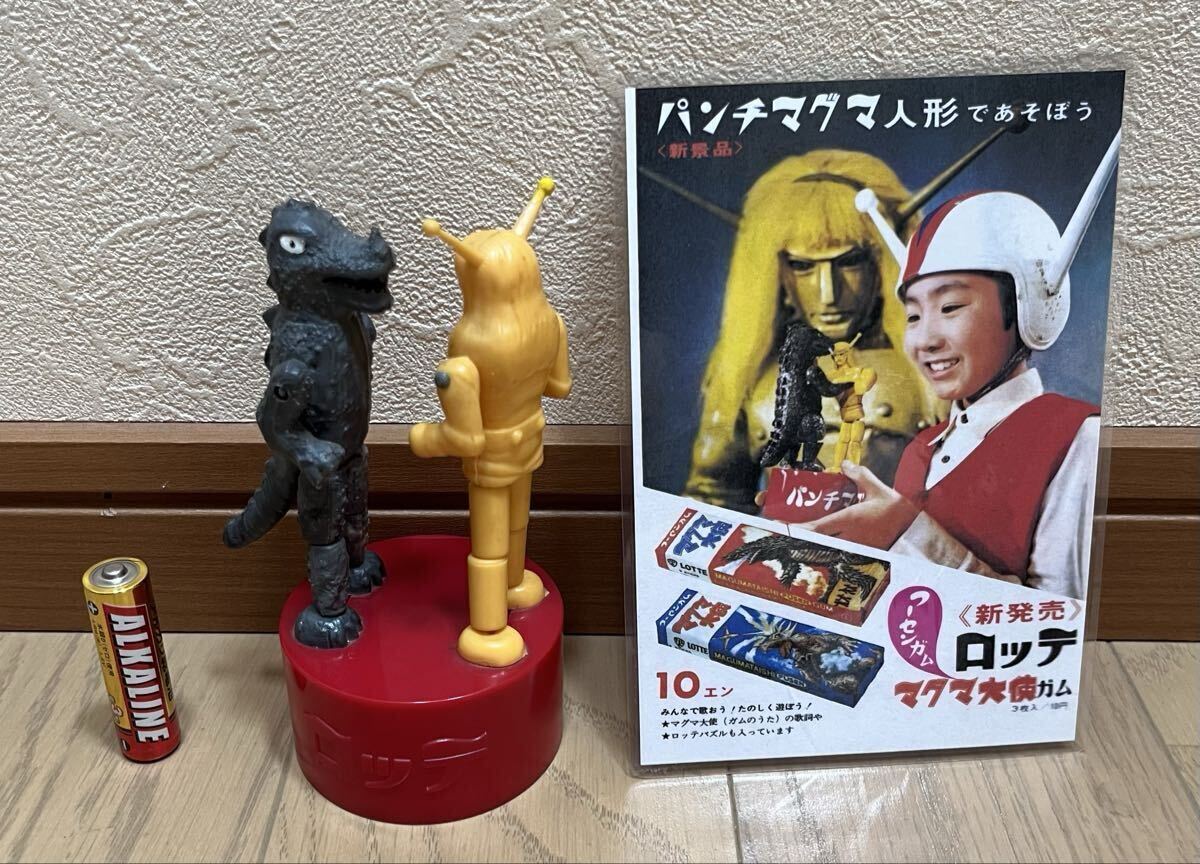 昭和41年 1966年 当時物 マグマ大使 パンチマグマ人形 高さ13cm ロッテ 懸賞当選品 広告付き