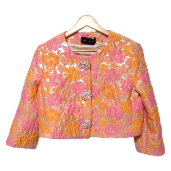 Product name: パオラ フラーニ PAOLA FRANI サイズ40 M - ライトゴールド×ピンク×オレンジ レディース 七分袖/花柄/ショート丈/春/秋 新品同様