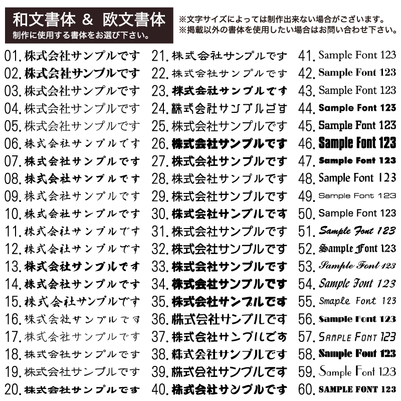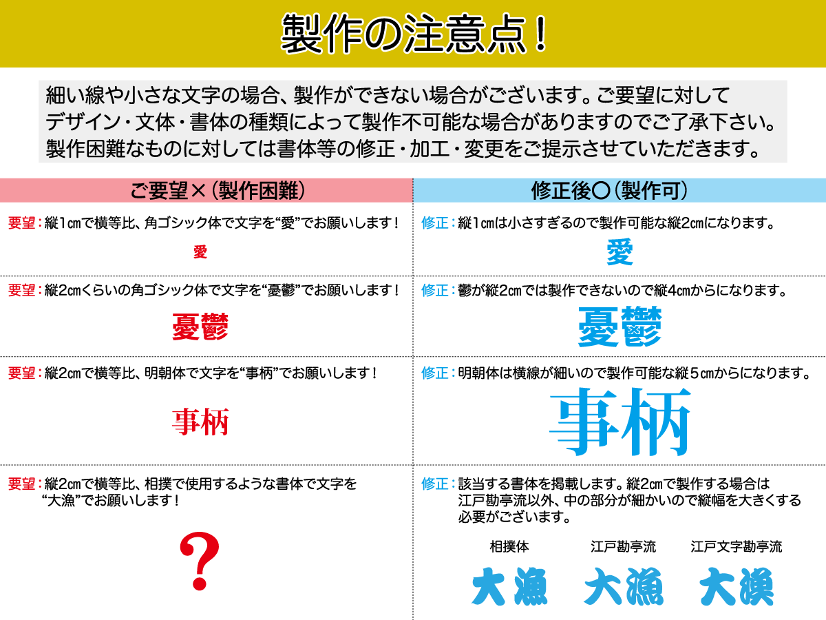 製作する文字は書体によりますが1文字3cm以上からになります。