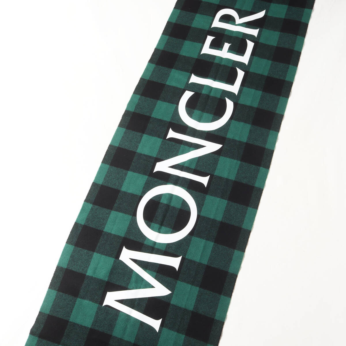 Product name: MONCLER モンクレール ストール | ロゴプリント フリンジ ブロックチェック 大判 ストール | グリーン ブラック | ブランド ファッション