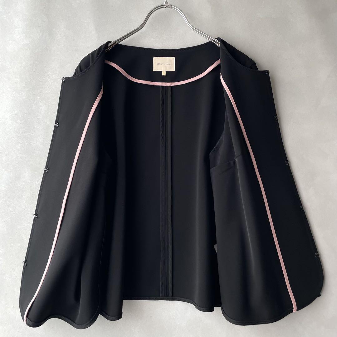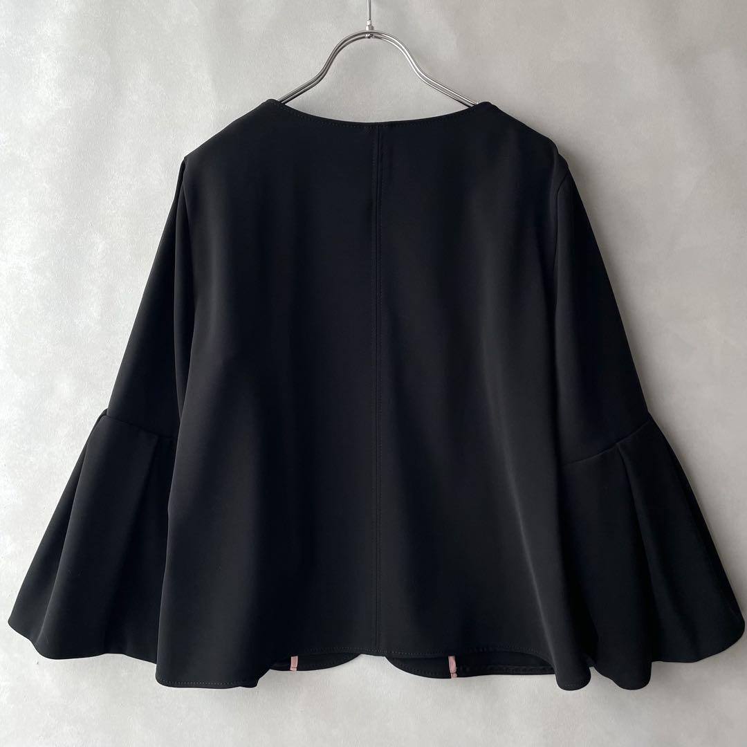 Product name: 極美品 ローズティアラ サイズ42 サイズXL 袖フレア ノーカラージャケット レディース 黒 ブラック 伸縮有り 手洗い可