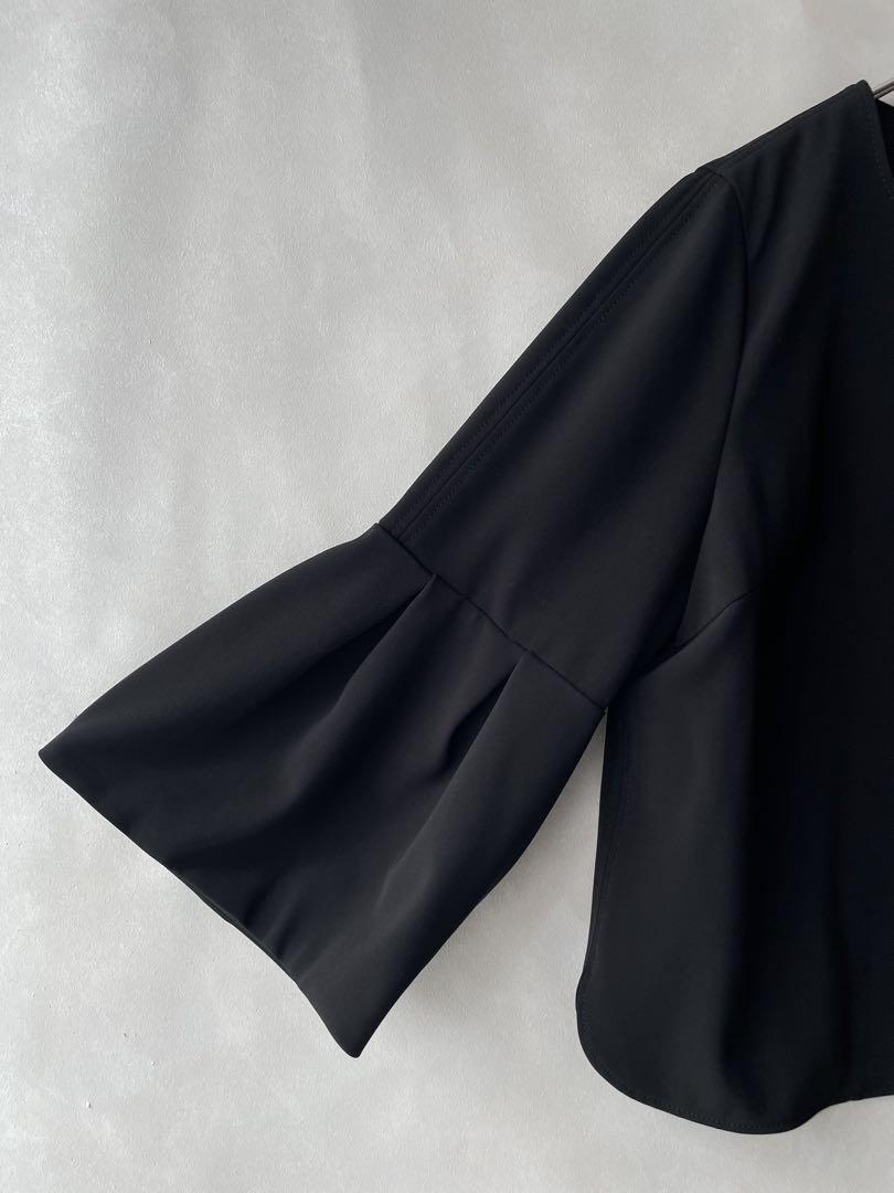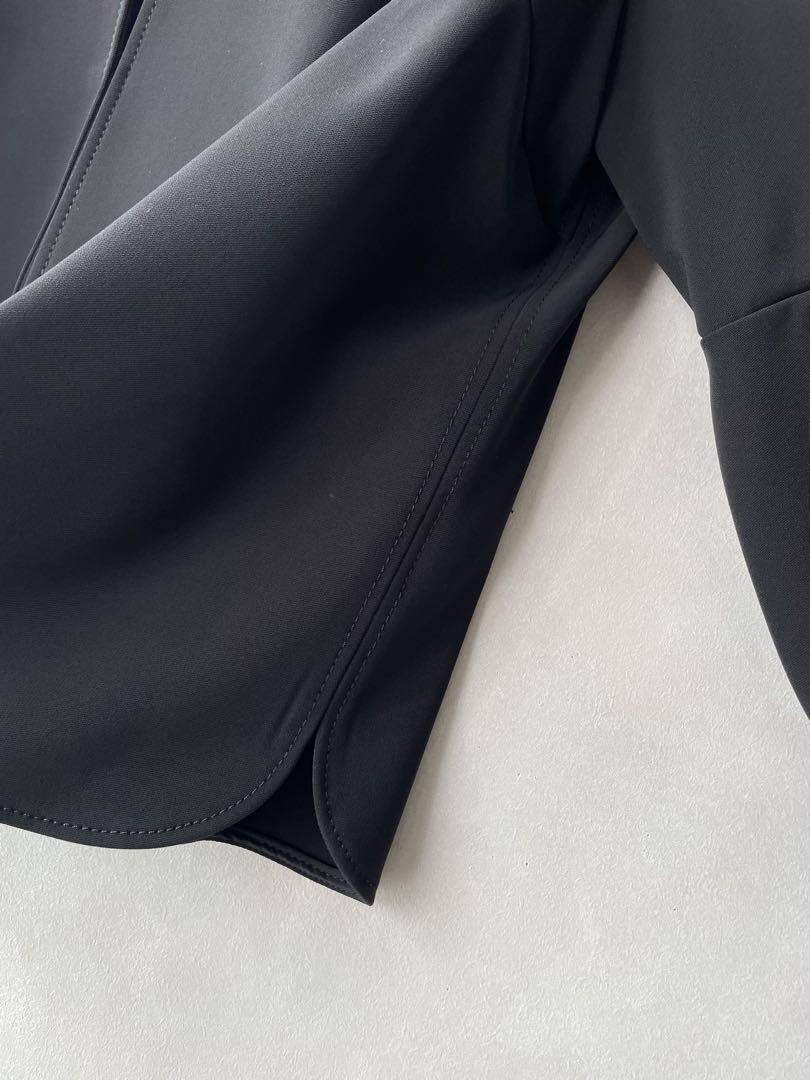 【商品】袖タックフレア ノーカラー ストレッチジャケット