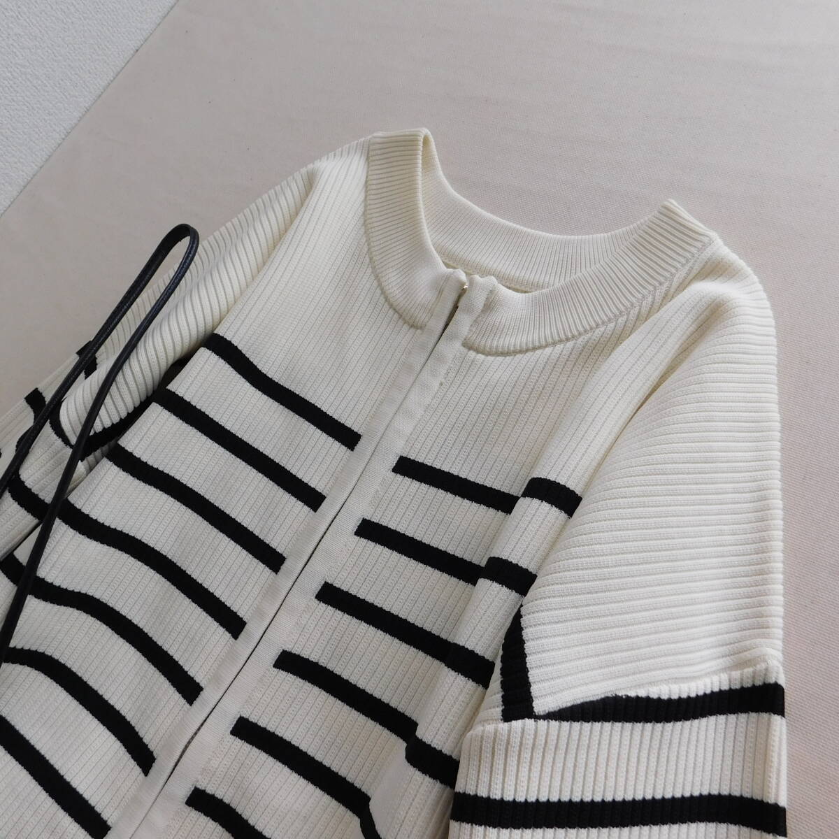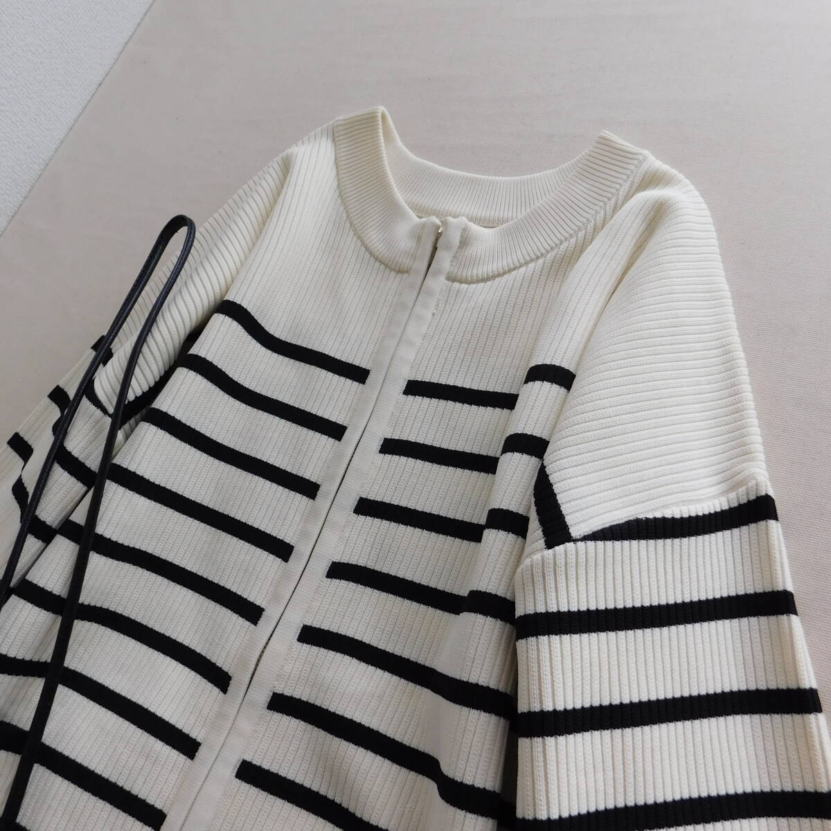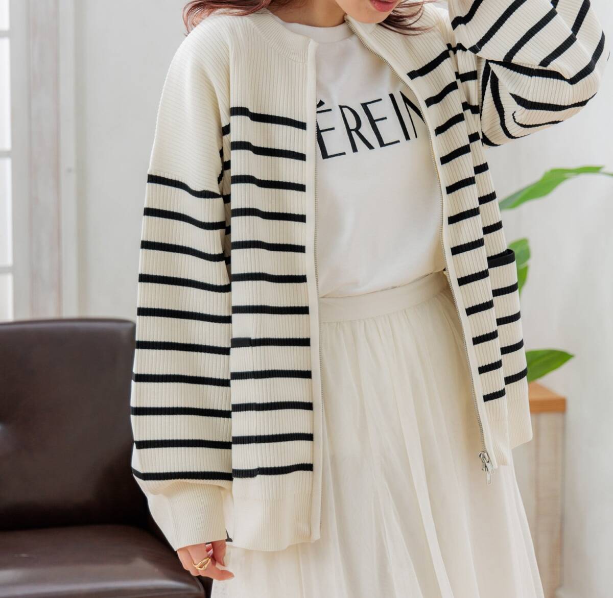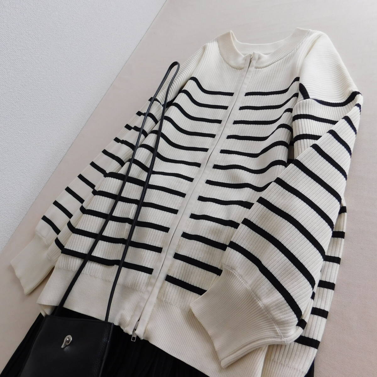 モノトーンのボーダーのゆったりカーディガンがかわいいです(*^^*)
