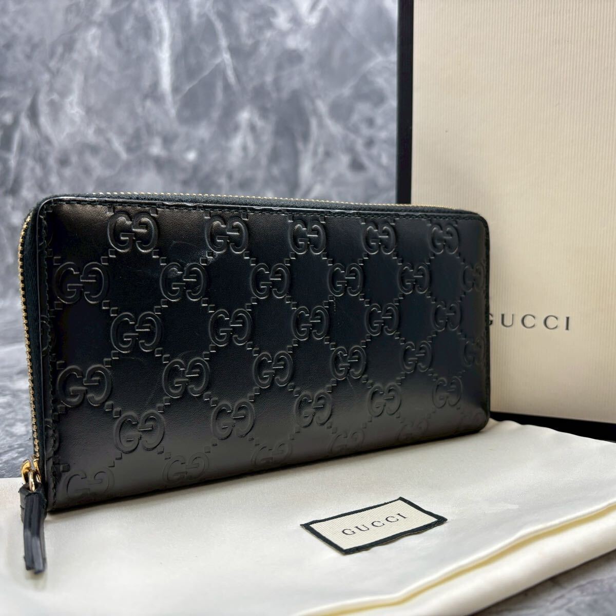Product name: 【未使用級】 GUCCI グッチ 長財布 ラウンドファスナー ロングウォレット 410102 ブラック レザー シマ 本革 ビジネス 黒 メンズ 総柄 GG