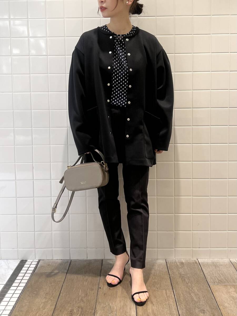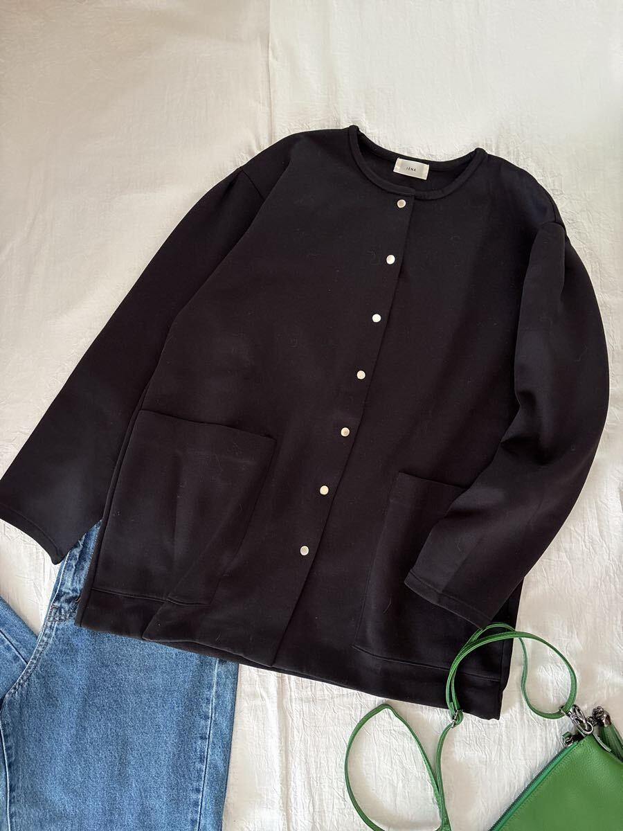 ∞ 2022aw IENA イエナ 袖タック ダンボール スナップ カーディガン ブラック 黒 ニット ジャケット 羽織り ∞