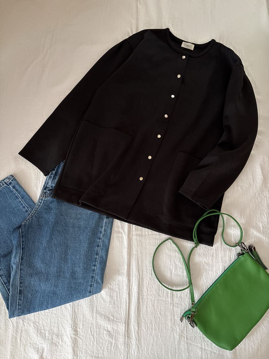 Product name: ∞ 2022aw IENA イエナ 袖タック ダンボール スナップ カーディガン ブラック 黒 ニット ジャケット 羽織り ∞