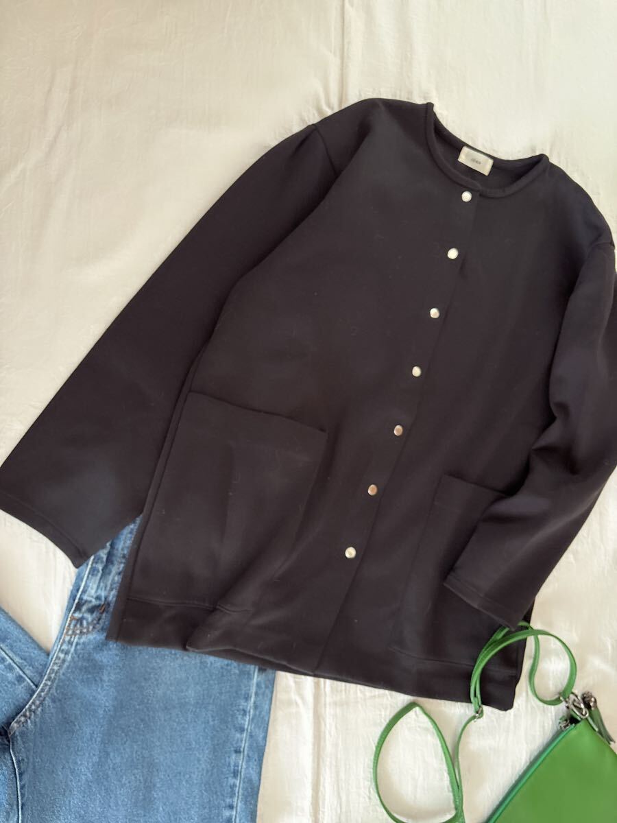 2022aw iena 袖タックダンボールスナップカーディガン 定価¥16500 カラー ブラック しっかりした中肉厚のダンボール素材なのでジャケット代わりにもなります。 柔らかく暖かいのでロングシーズンお召し頂けます。 サイトより【2022】IENAスポーティーな質感のダンボール素材で作ったカーディガン。袖のタックデザインと、クルーネックの詰まった襟ぐりは、 女性らしくも品のある印象に。シルバーの小さめのスナップボタンもポイントになります。