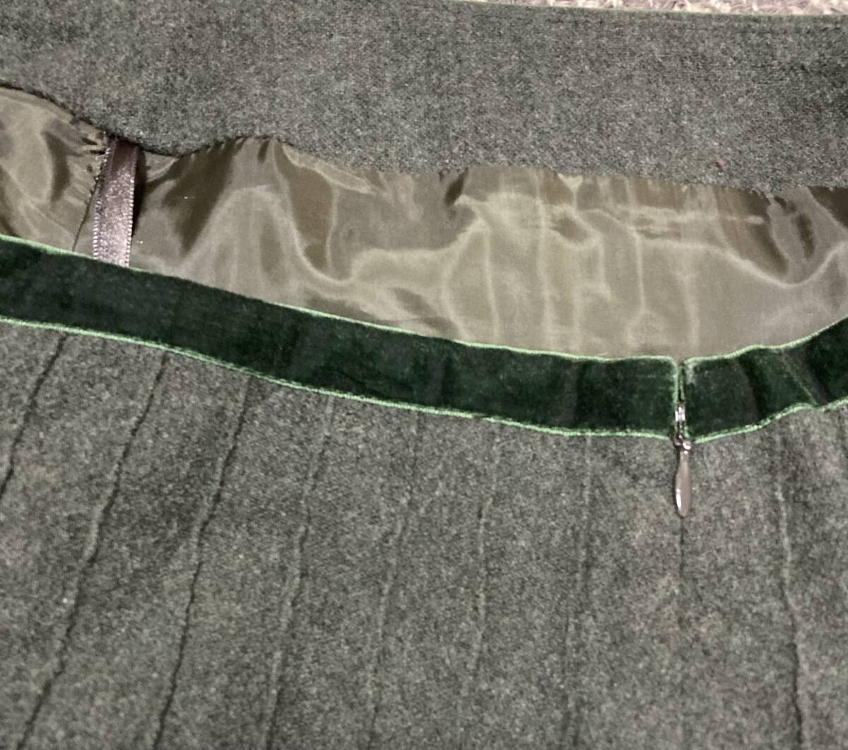 Product name: GAP◆ウールスカート◆ダークグリーン裏地付きスカート台形スカートベロアカーキレディースボトムス膝丈大きめギャップストライプ柄
