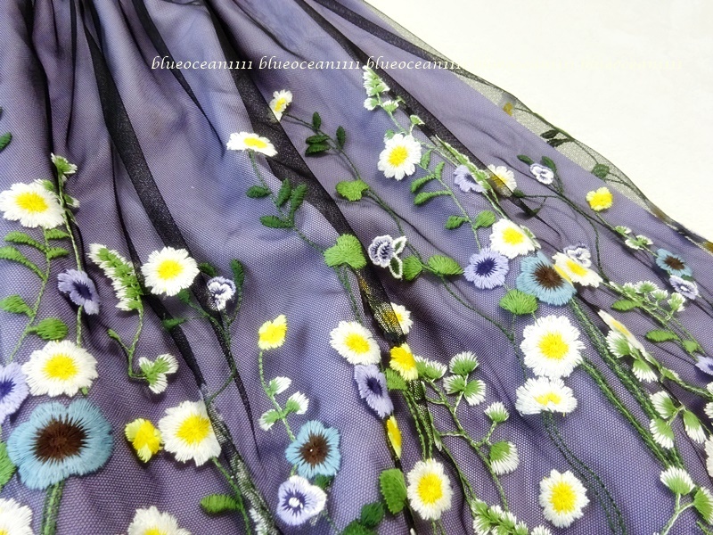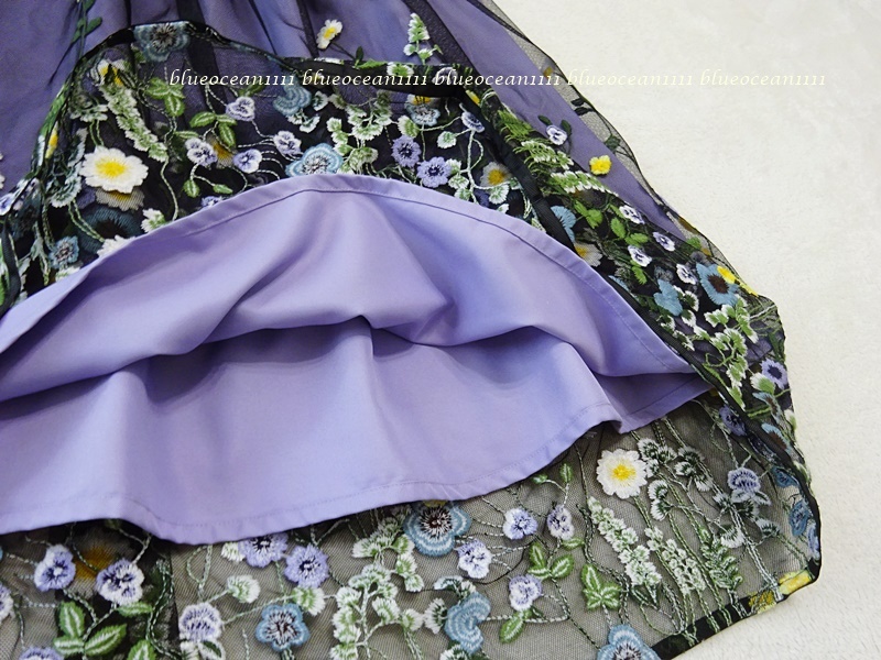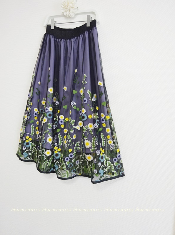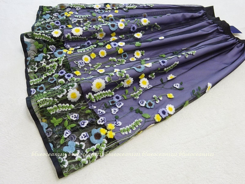 【商品】:    フラワー刺繍 チュールドッキングロングスカート