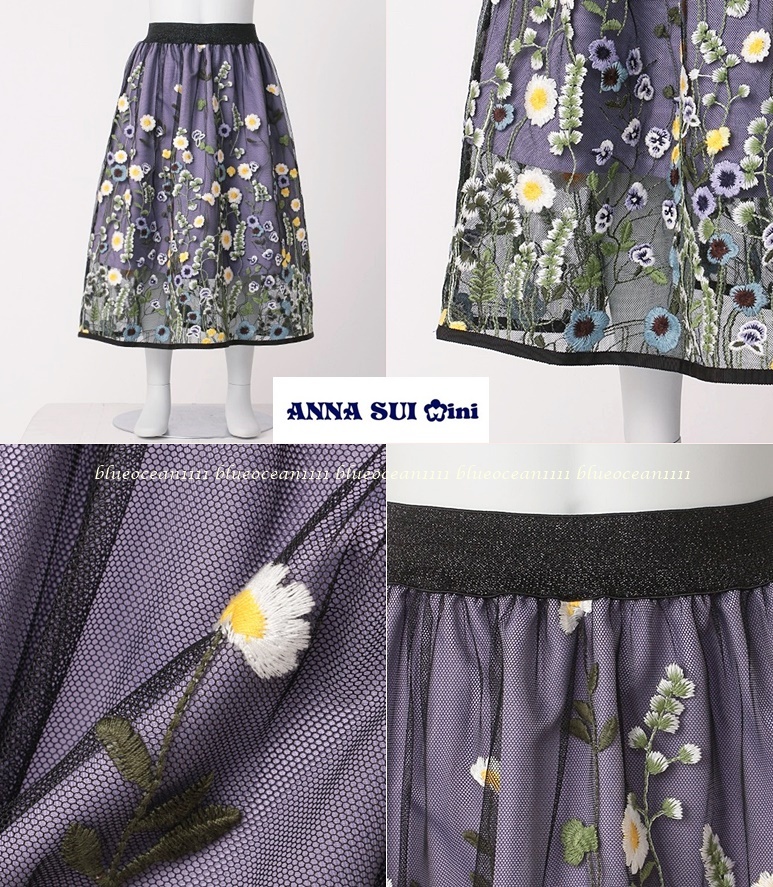 新品 17,380円 【アナスイミニ】フラワー刺繍 チュールドッキングロングスカート 150cm