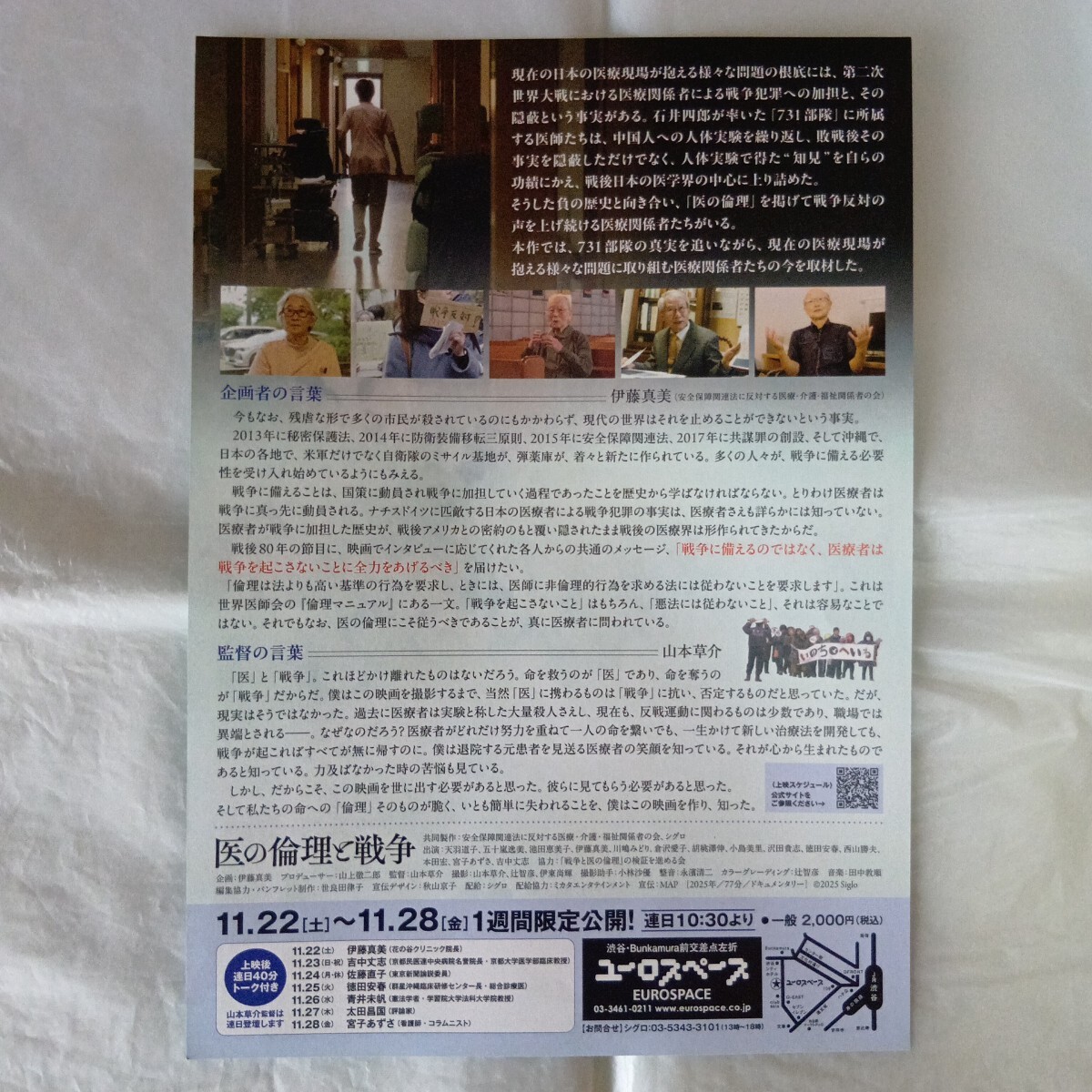 Product name: チラシ 医の倫理と戦争 山本草介監督 25.11.22